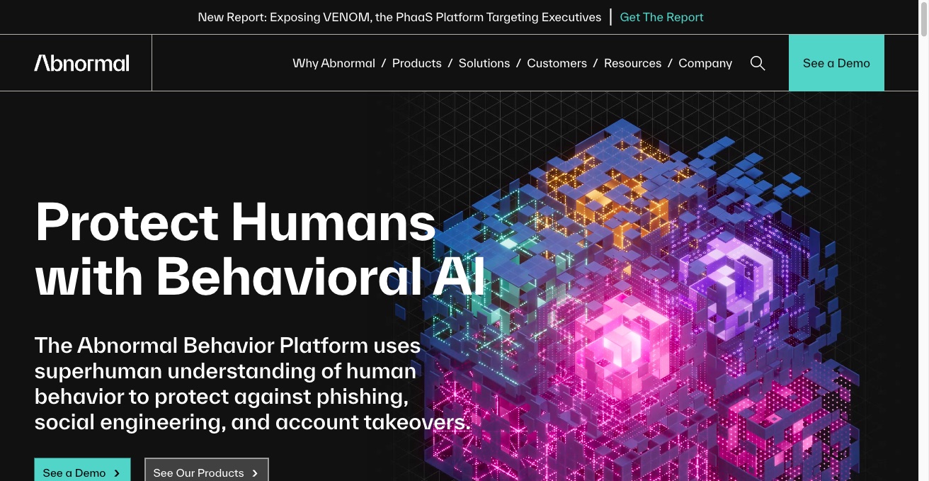 Abnormal AI is a cloud email and SaaS security platform that uses behavioral AI to protect users from modern social engineering attacks. It autonomously detects phishing, business email compromise, and account takeovers across Microsoft 365, Google Workspace, and connected SaaS applications.