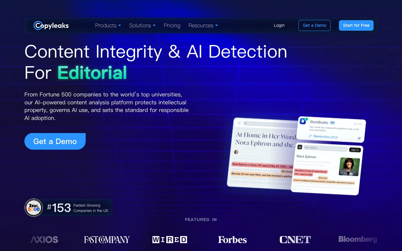 Copyleaks is an AI-powered detection platform that identifies AI-generated text, plagiarism, and code similarity—used by universities, publishers, and enterprises to verify content authenticity and maintain academic integrity.