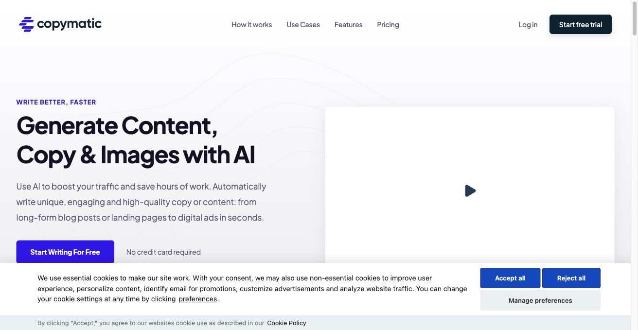 Copymatic is an AI copywriter that generates blog posts, ad copy, landing pages, emails, and social content from 80+ templates trusted by thousands of marketers.