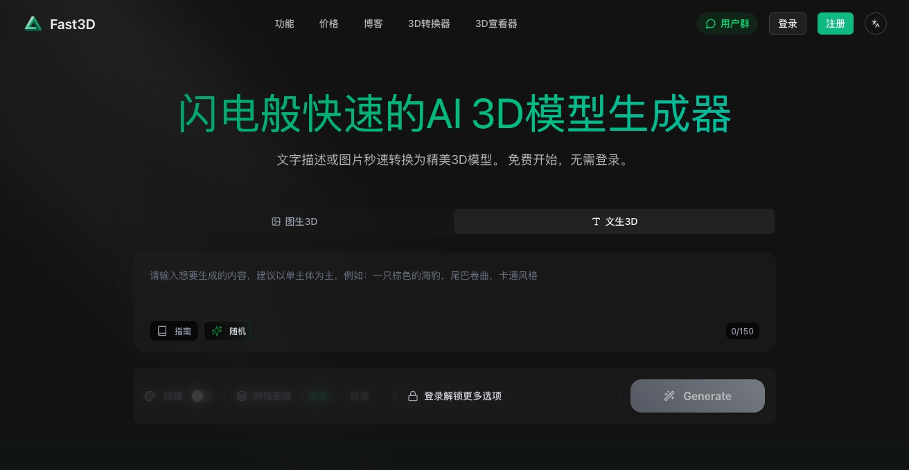 Fast3D is an AI 3D model generator that converts text or images into high-fidelity 3D models in about 10 seconds, with PBR textures and export to GLB, FBX, OBJ, and STL.