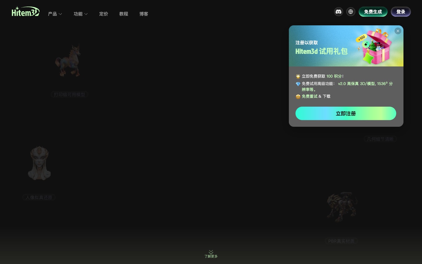 Hitem3D is an AI 3D model generator based on Sparc3D and Ultra3D. It produces print-ready models with clean topology, PBR textures, and portrait-grade detail up to 1536³ resolution.