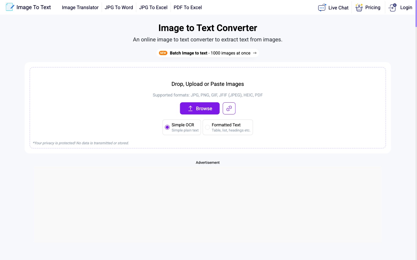 ImageToText is a free browser-based OCR tool that extracts text from photos, screenshots, and scanned documents using AI optical character recognition—designed for quick copy-paste without software installation.