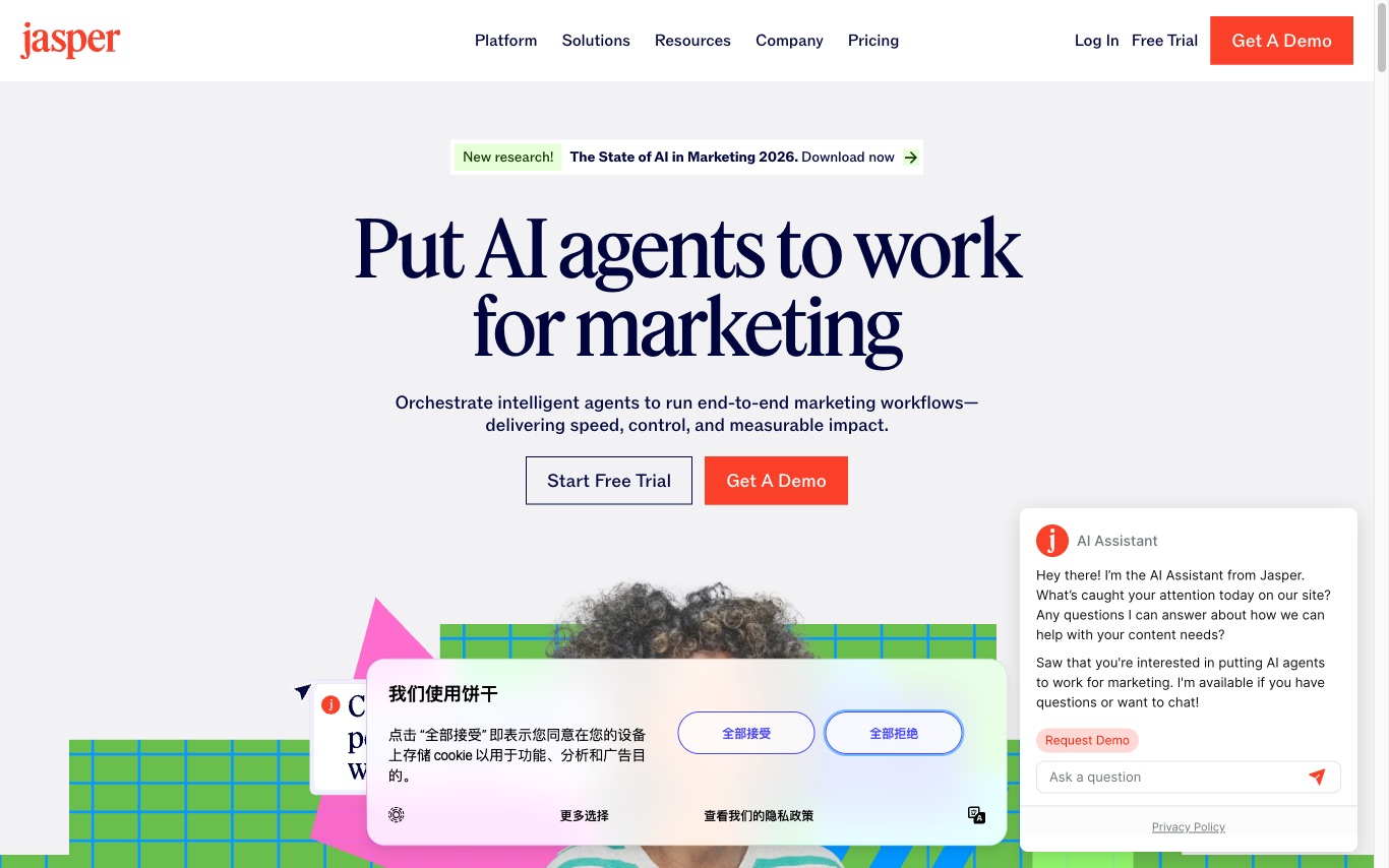 Jasper is an enterprise marketing AI agent workspace. 100+ specialised agents, content pipelines, and Jasper IQ turn marketing strategy into execution across channels and markets.