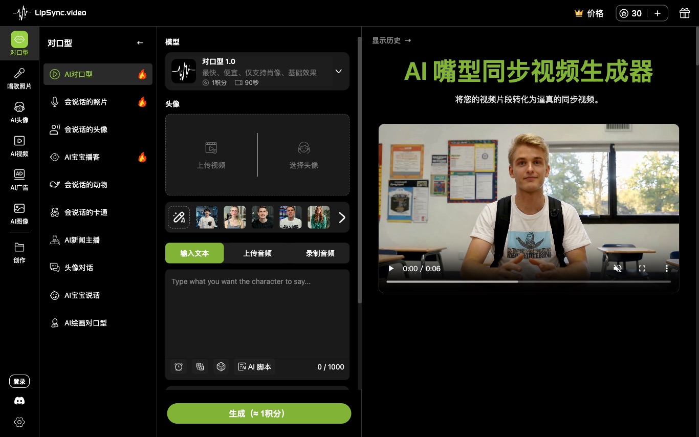 Lipsync.Video is a free AI lip-sync video generator used by 1M+ creators. Upload video plus audio or a script and the AI matches mouth motion, with 200+ voices, 300+ avatars, and watermark-free output.