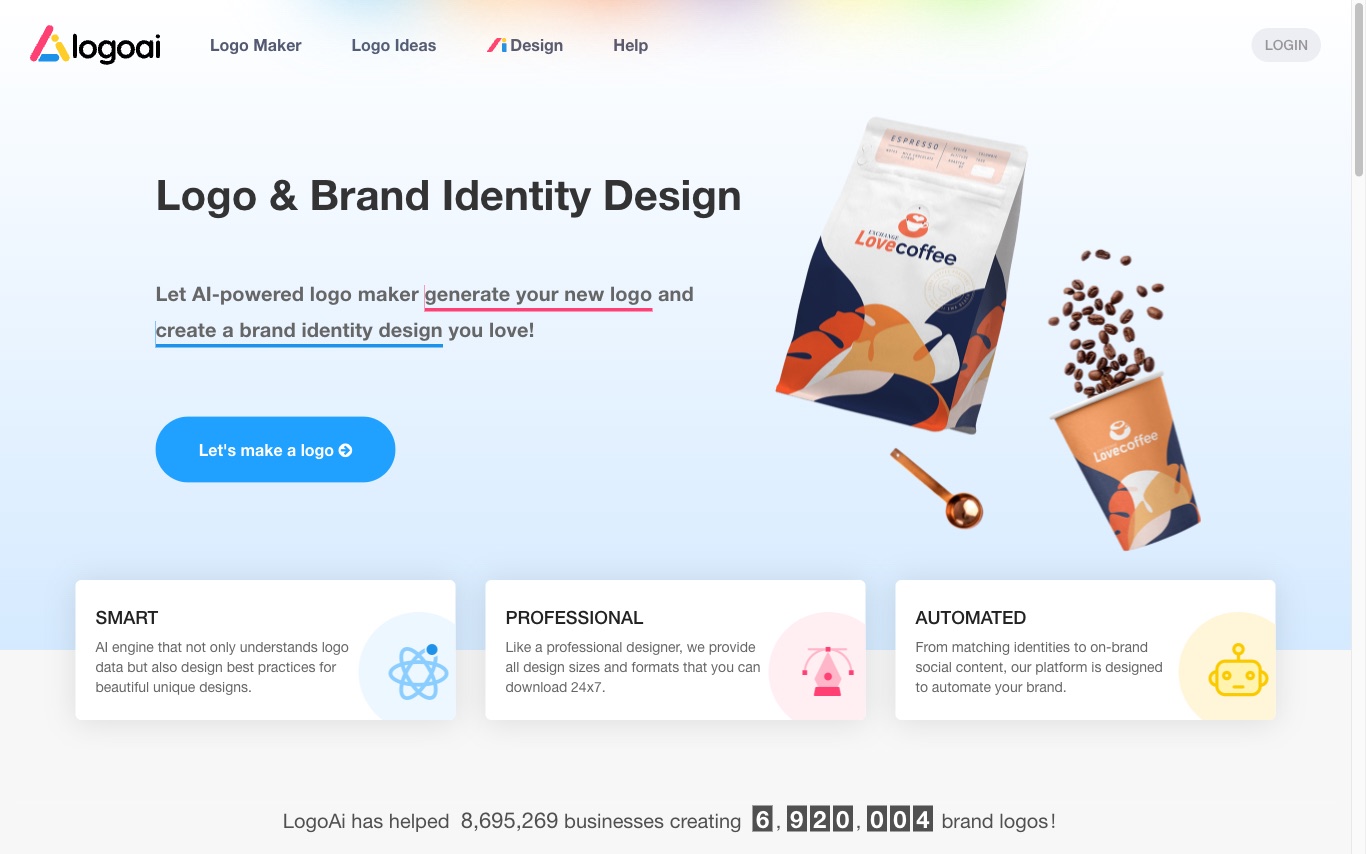 Logo.com uses AI to generate professional logos, business cards, and complete brand kits in minutes, no design experience required.