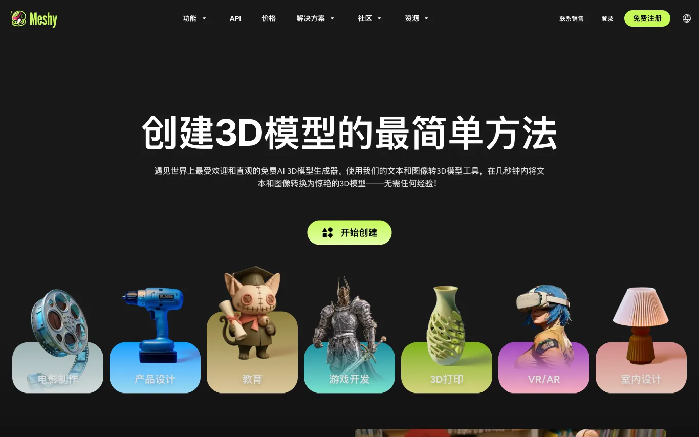 Meshy AI generates textured 3D meshes from text prompts or reference images, producing assets in GLB and USDZ formats. It integrates with Blender and Unity and offers a public API, targeting game developers, 3D artists, and AR/VR creators who need fast iteration without manual modeling.