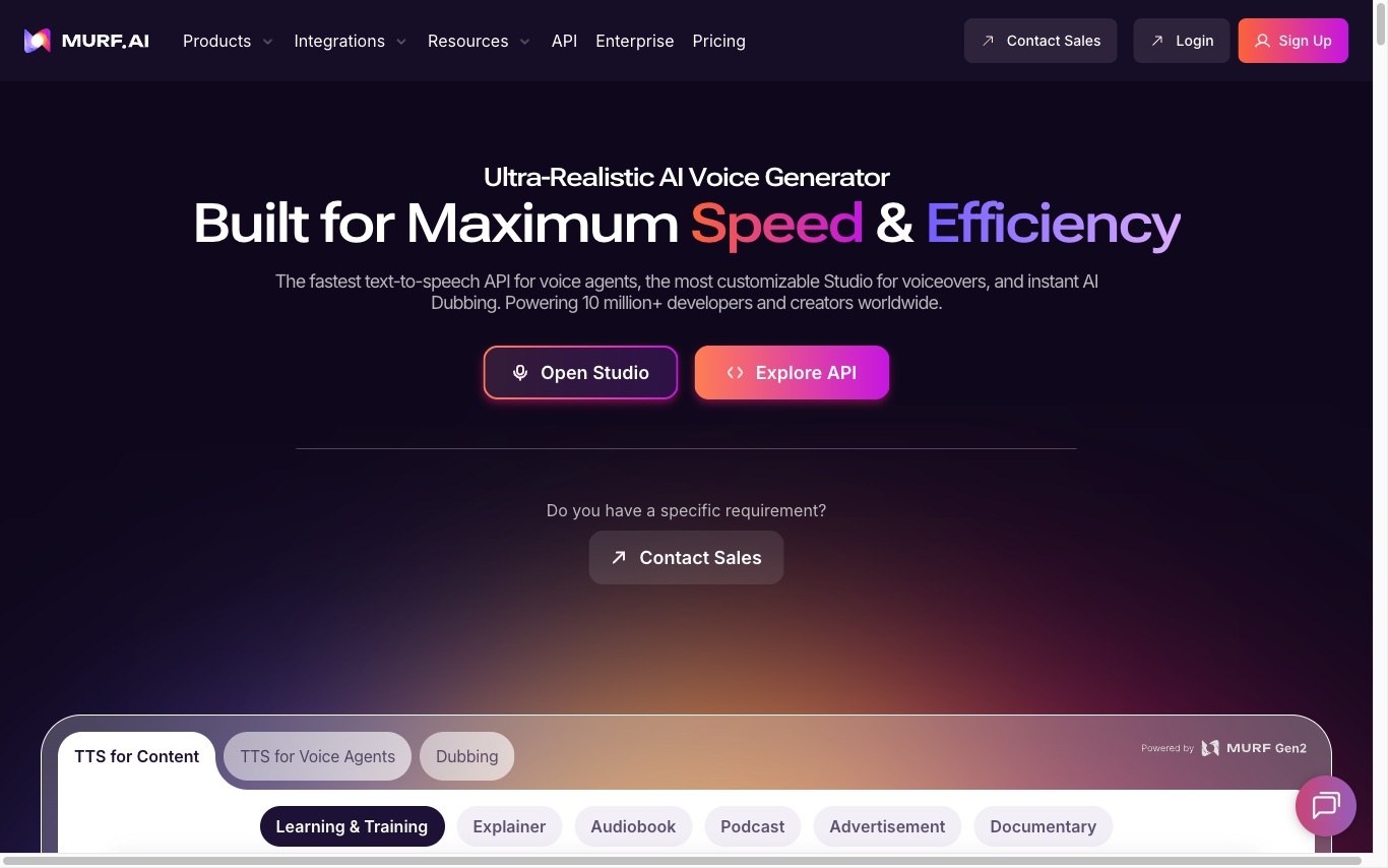 Murf is an AI voice generator built for voiceovers and voice agents. It offers a fast text-to-speech API, customizable Studio, and instant AI dubbing used by 10M+ developers and 300+ Fortune 2000 companies.
