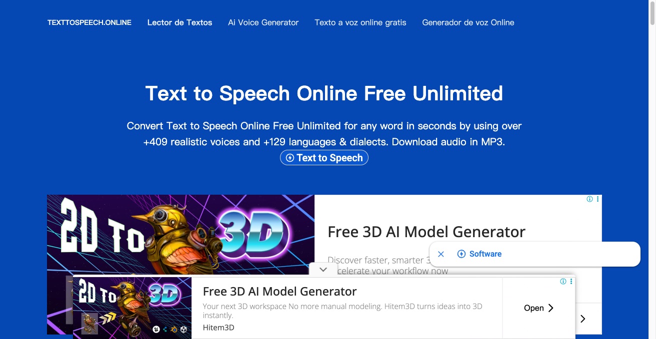 Free unlimited text-to-speech web tool that converts long-form text into downloadable AI voice audio.