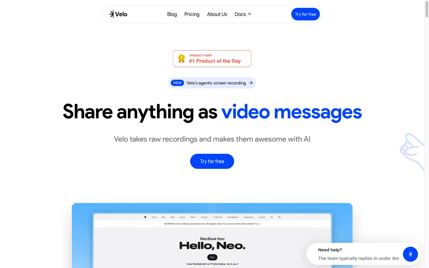 Velo is an AI video messaging tool that converts raw screen recordings, PPT, PDF, or uploaded videos into polished, shareable video messages. It rewrites the script from scratch, generates an AI avatar with natural lip-sync and gestures, and packages everything into a brand-consistent video.