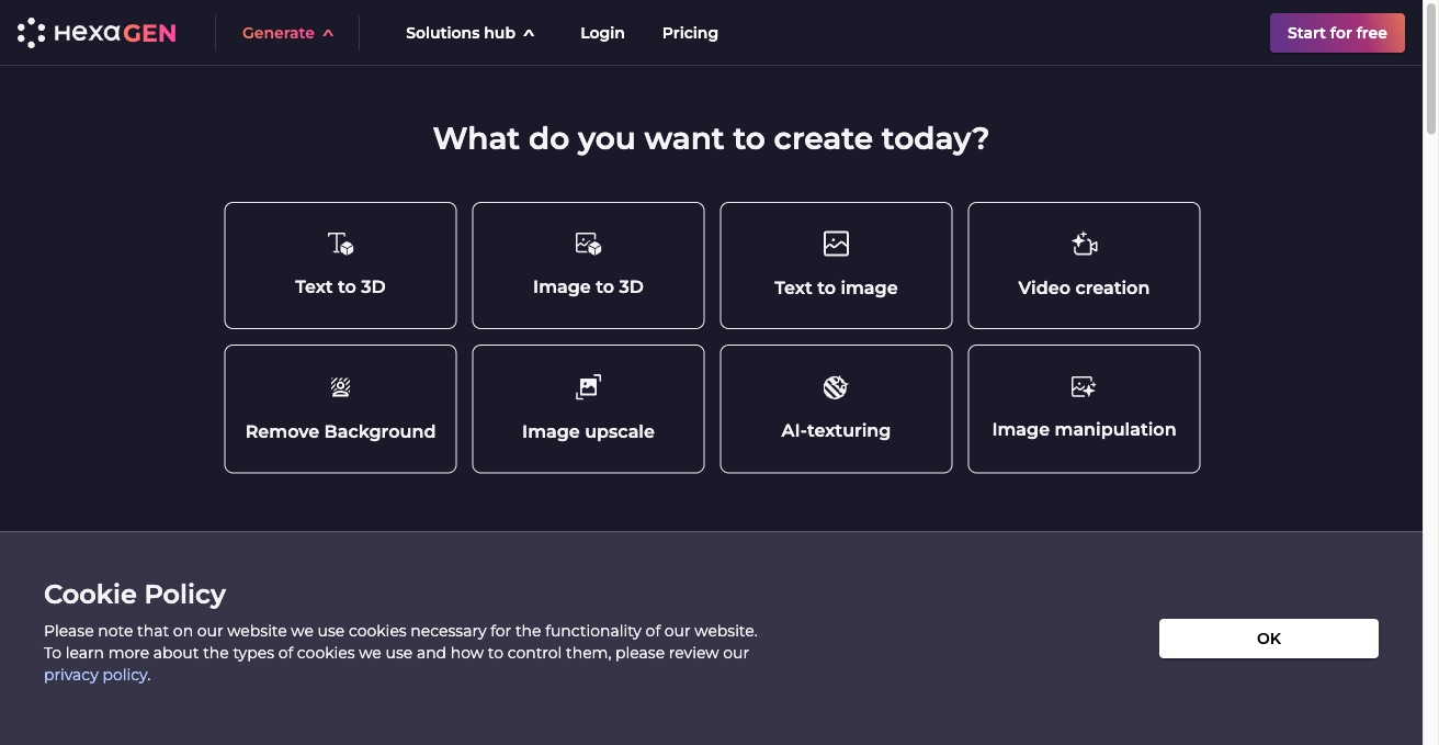 HexaGen 是自动化 2D/3D 内容创作平台,支持文字和图片生成 3D 资产,并提供文生图、视频创作、抠图和 AI 贴图。
