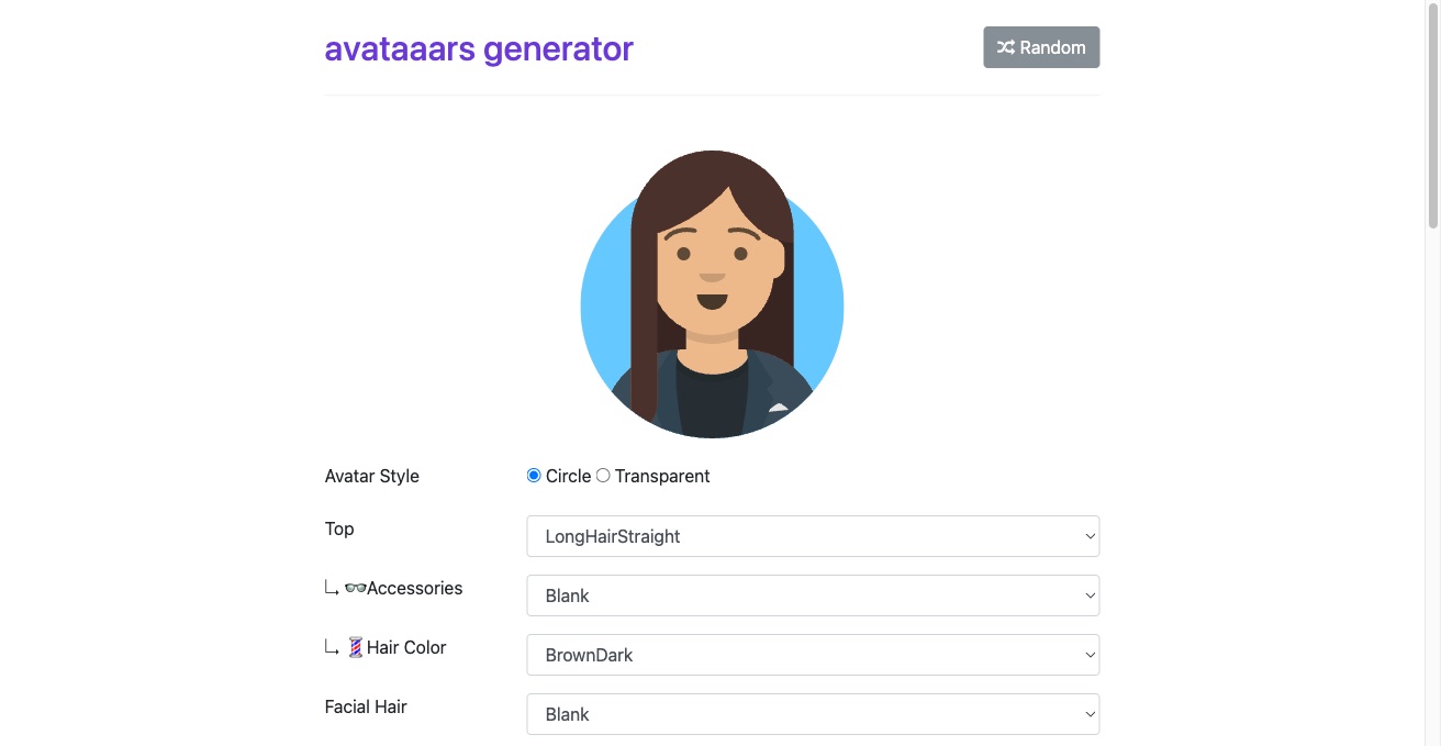 Avataaars Generator 是免费在线头像生成器,基于流行的 Avataaars 风格,可组合面部、发型、服装和配饰打造个性化卡通头像。