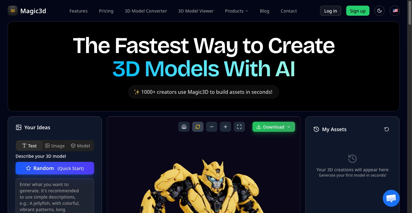 Magic3D 是免费 AI 3D 模型生成器,可从文本或图片生成 3D 模型,适合游戏、3D 打印和 AR/VR。