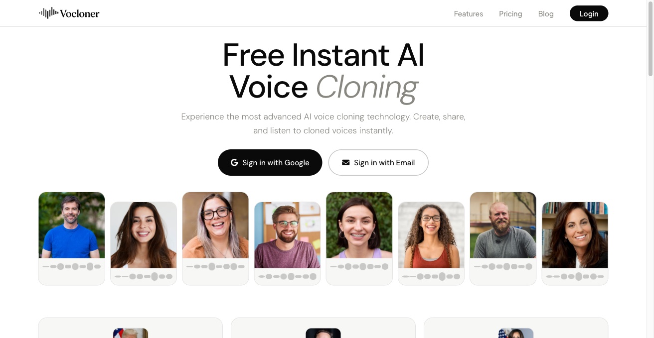 Vocloner 是免费即时声音克隆工具,上传短样本即可生成可用于 TTS 的声音模型,面向创作者、UGC 和有声书。